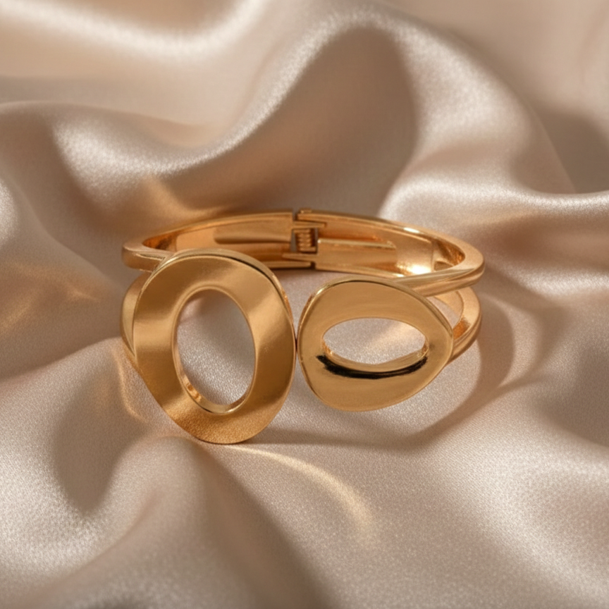 A chic and modern cuff bracelet featuring sleek open-circle metal accents, crafted in a premium non-tarnish finish. Specially designed for teenagers, it ensures a perfect fit for smaller wrists, making it both stylish and comfortable for everyday or party wear.