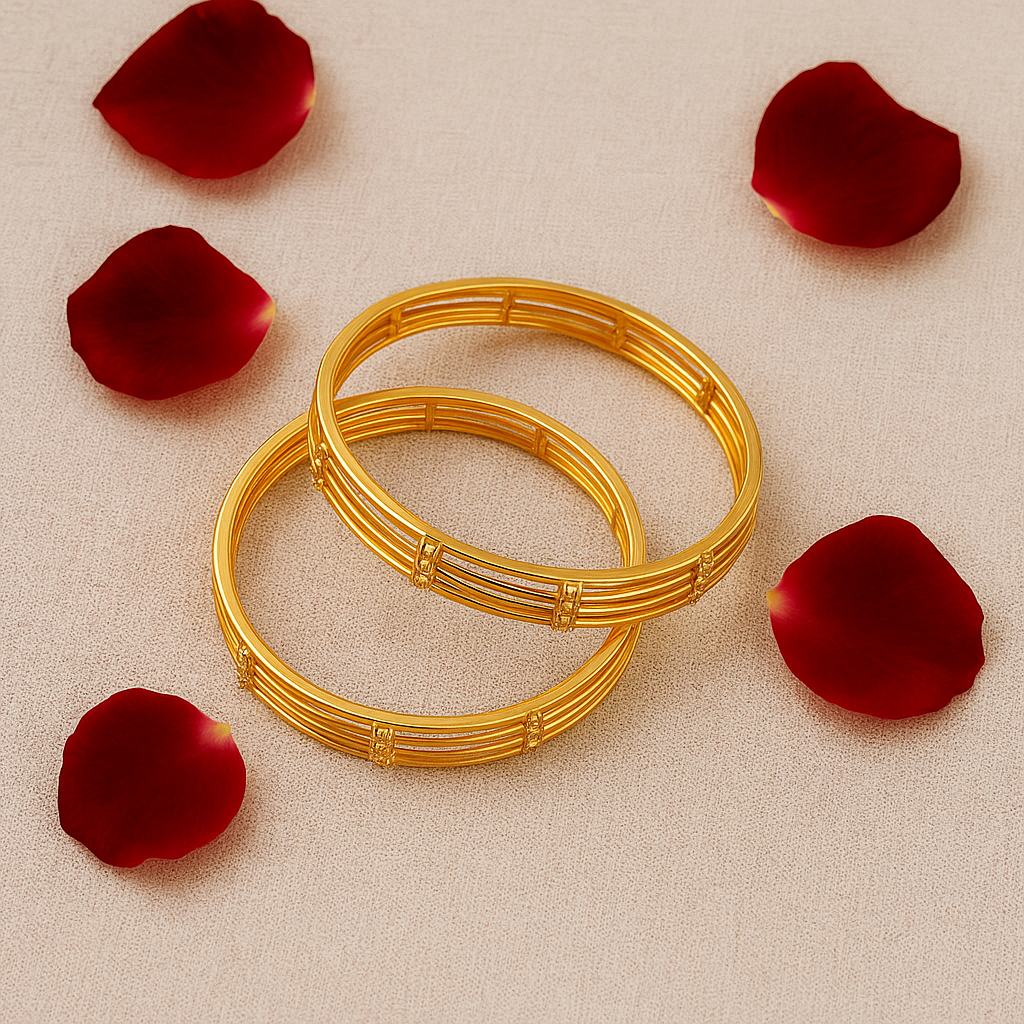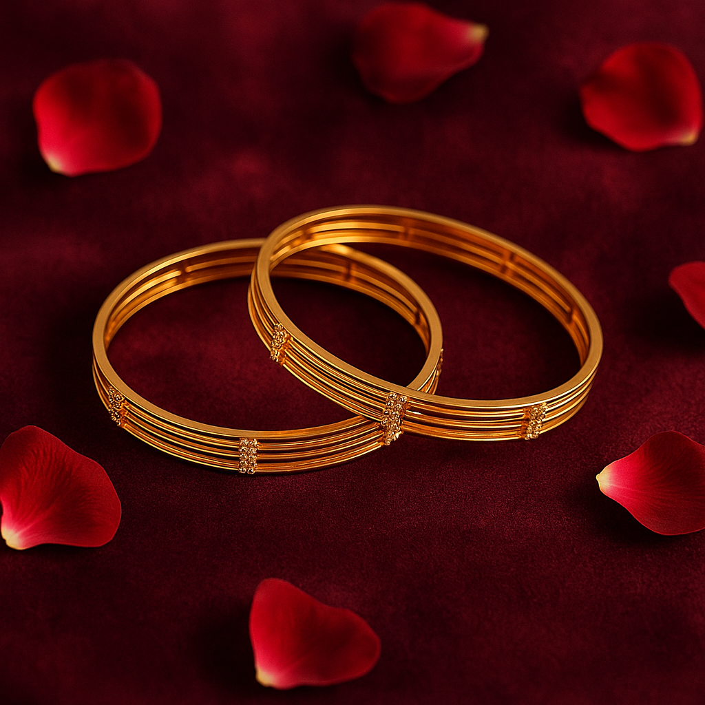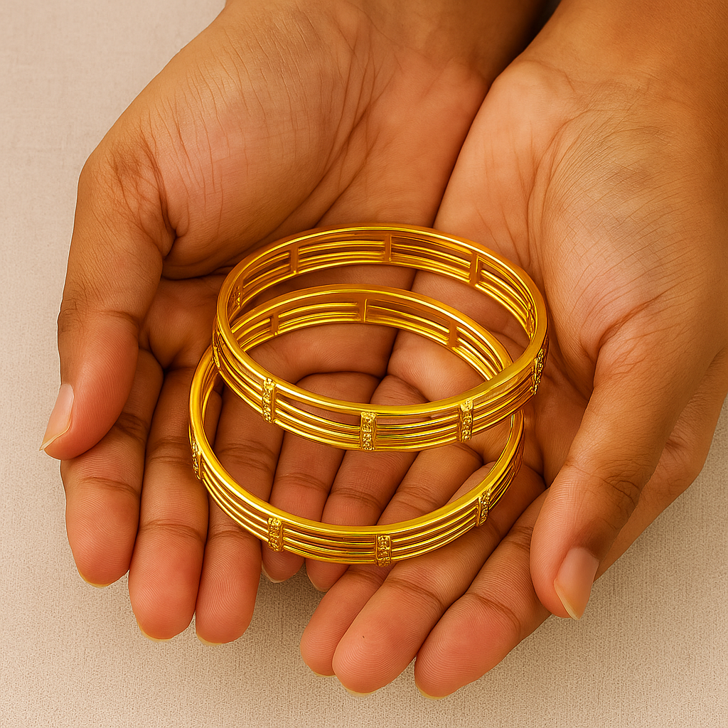 Featuring bold rectangular crystal-set segments across a polished gold body, the Regal Panel Kada makes a radiant statement. Its clean lines and solid silhouette make it ideal for occasion wear or gifting. Perfect for Festive occasions, Weddings