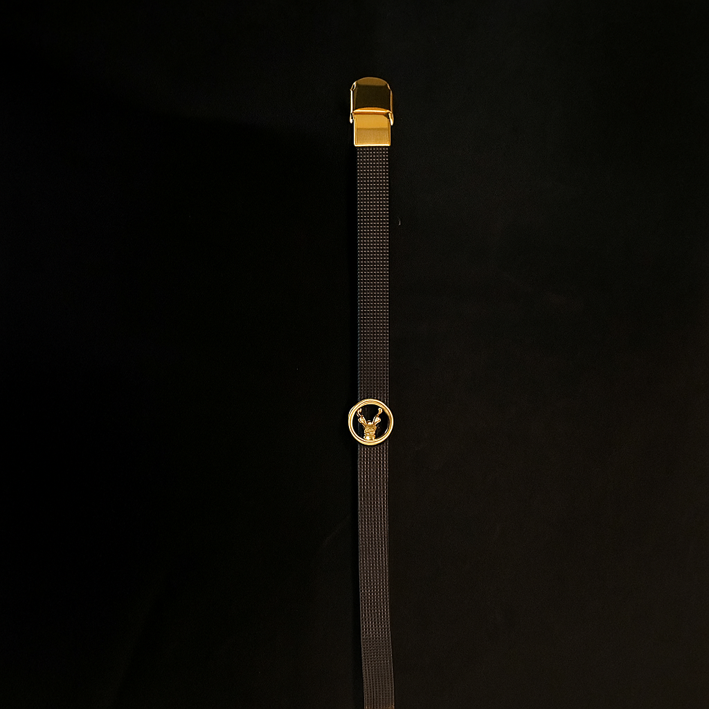 Crafted in 92.5 sterling silver and finished with a subtle rose gold plating, this mesh bracelet features three sleek emblems for a statement look. Perfect for brunch dates, gifting, or everyday wear.